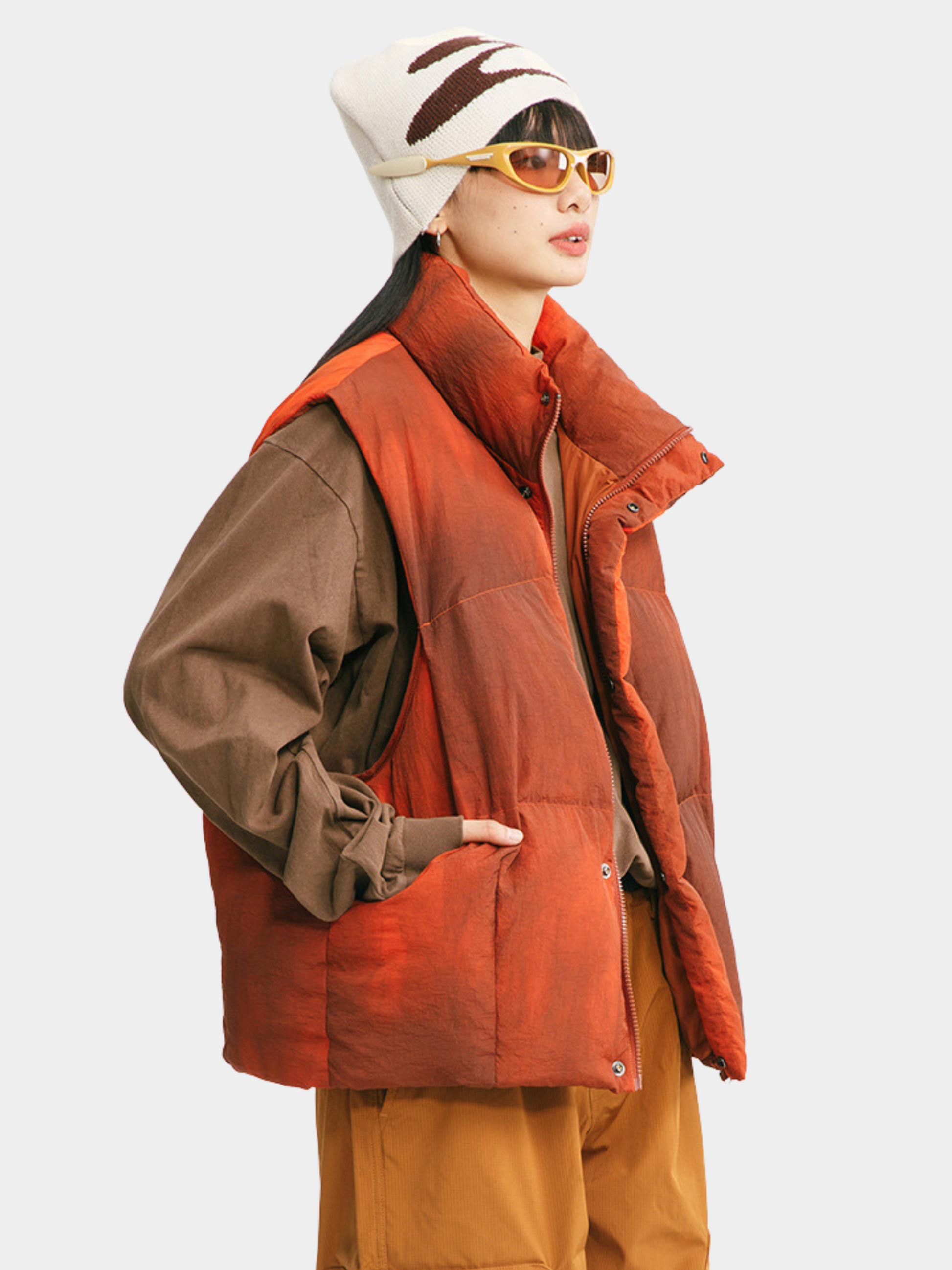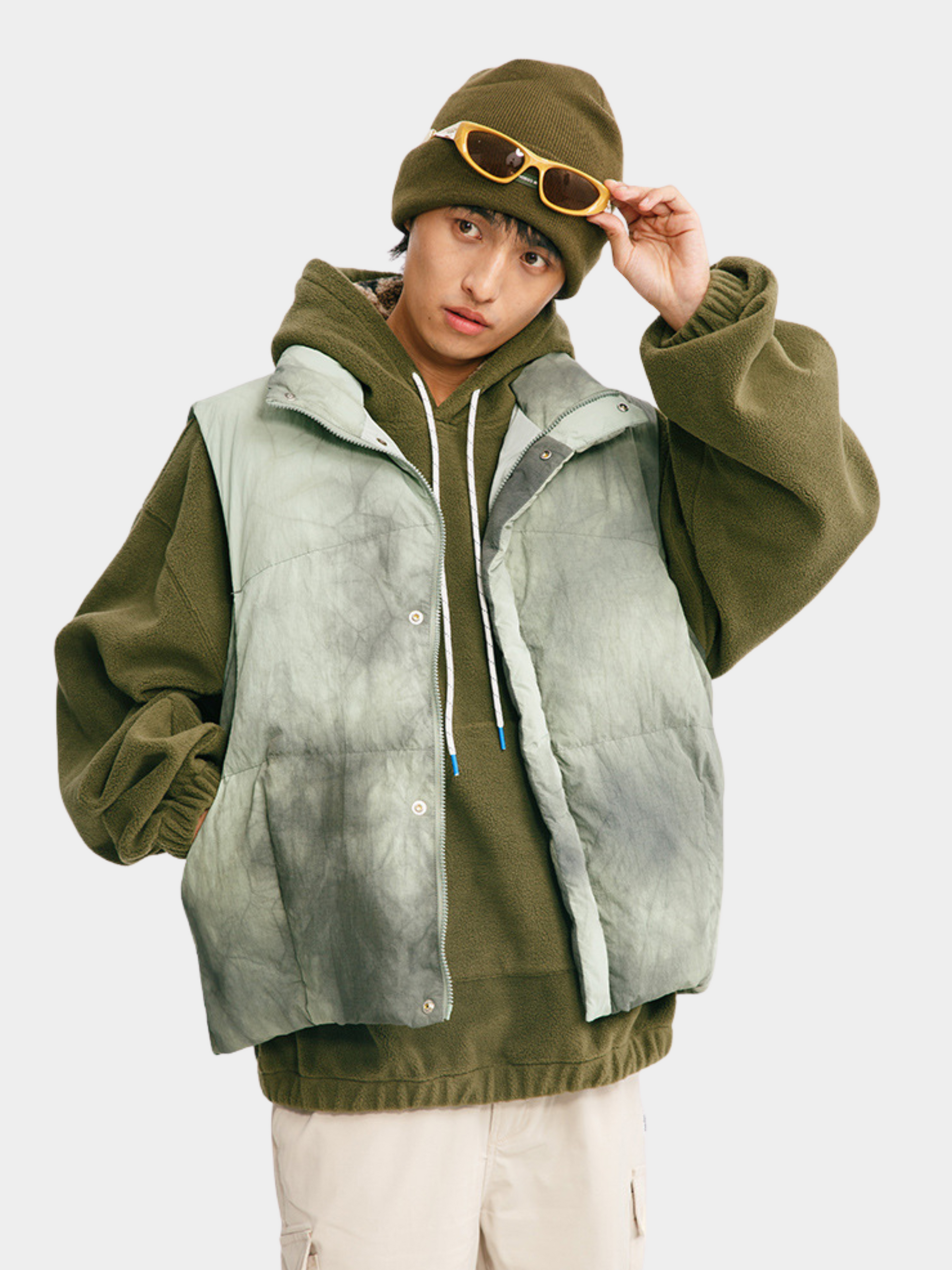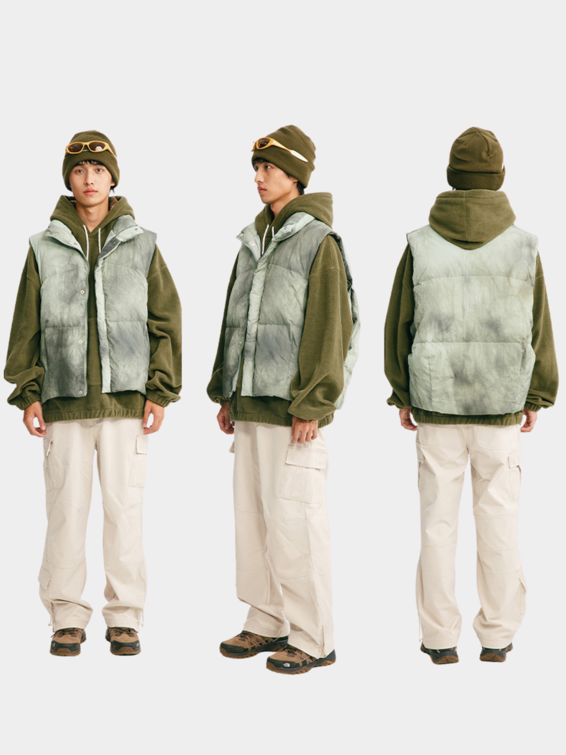 #Daunenweste #HandgefärbteOberbekleidung #WeißeEntendaunen #TechwearStil #WasserabweisendeWeste