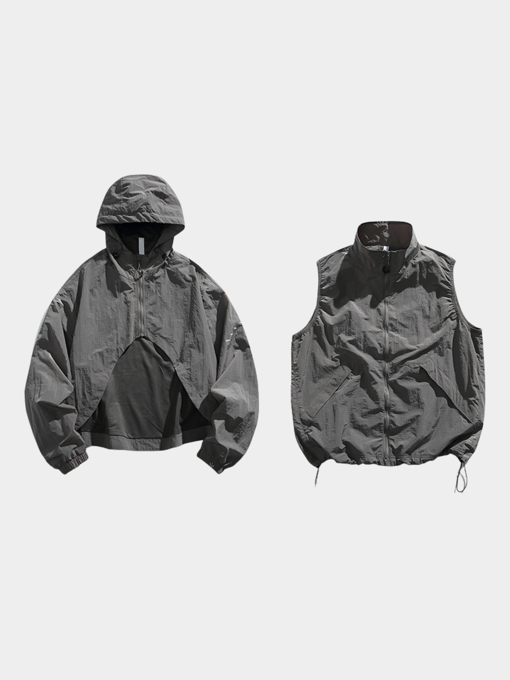 2-in-1 Umwandlungsdesign: Beinhaltet klassische Kapuzenjacke + Stehkragen-Weste für flexibles Styling