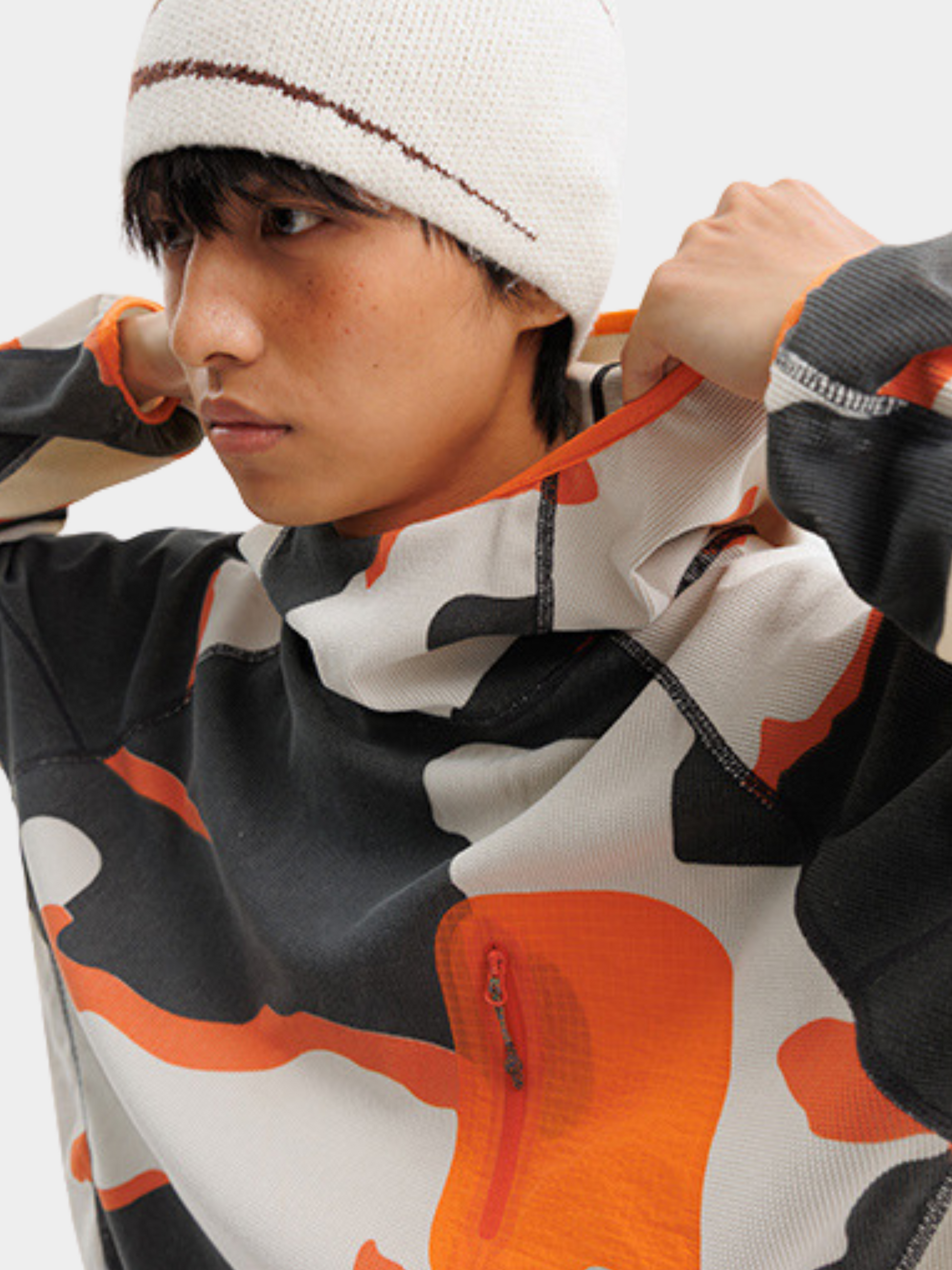 Ein leichter Pullover-Hoodie mit langen Ärmeln, der mit einer doppelseitigen Diamant-Wärmespeicherstruktur, schnellen Feuchtigkeitsableitungs-Kanälen und strapazierfähigem Stoff entworfen wurde. Kombiniert Komfort, Atmungsaktivität und Widerstandsfähigkeit, was ihn ideal für das Schichten in Outdoor- oder sportlichen Umgebungen macht.