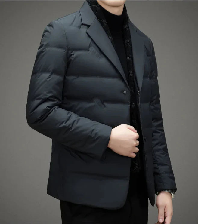 Der Darian Steppdaunenanzug bietet überlegene Wärme mit leichter Entenfedern-Isolierung, einer strukturierten Passform und einem eleganten Design für eine raffinierte Wintergarderobe.