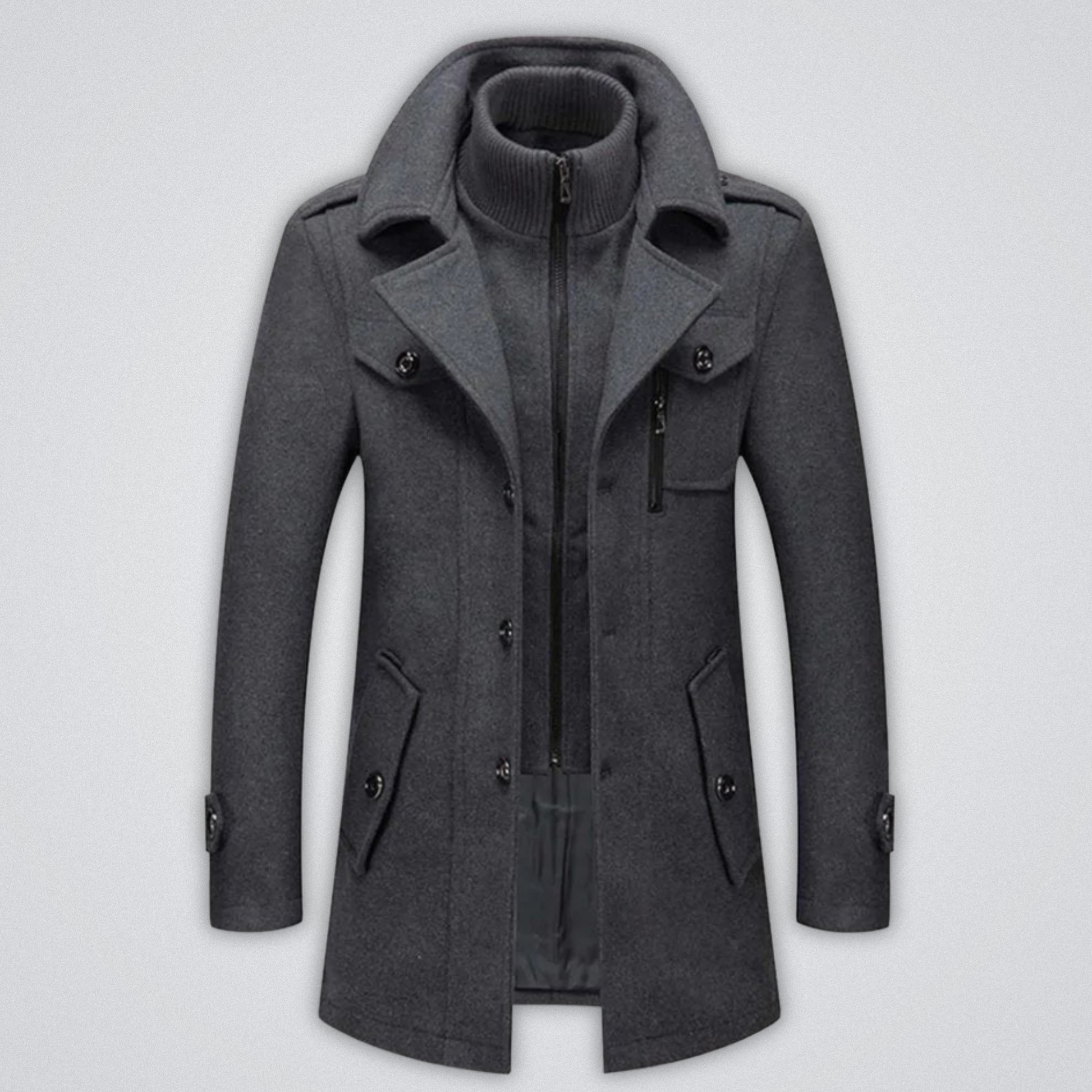 Die abnehmbare innere Schicht speichert Wärme nah am Körper, während die elegante äußere Schale eine raffinierte Silhouette gewährleistet, die mühelos von Bürozeiten zu Stadtabenden übergeht. Anpassen, schichten und mit Zuversicht bewegen — Edward hält dich die ganze Saison über warm.