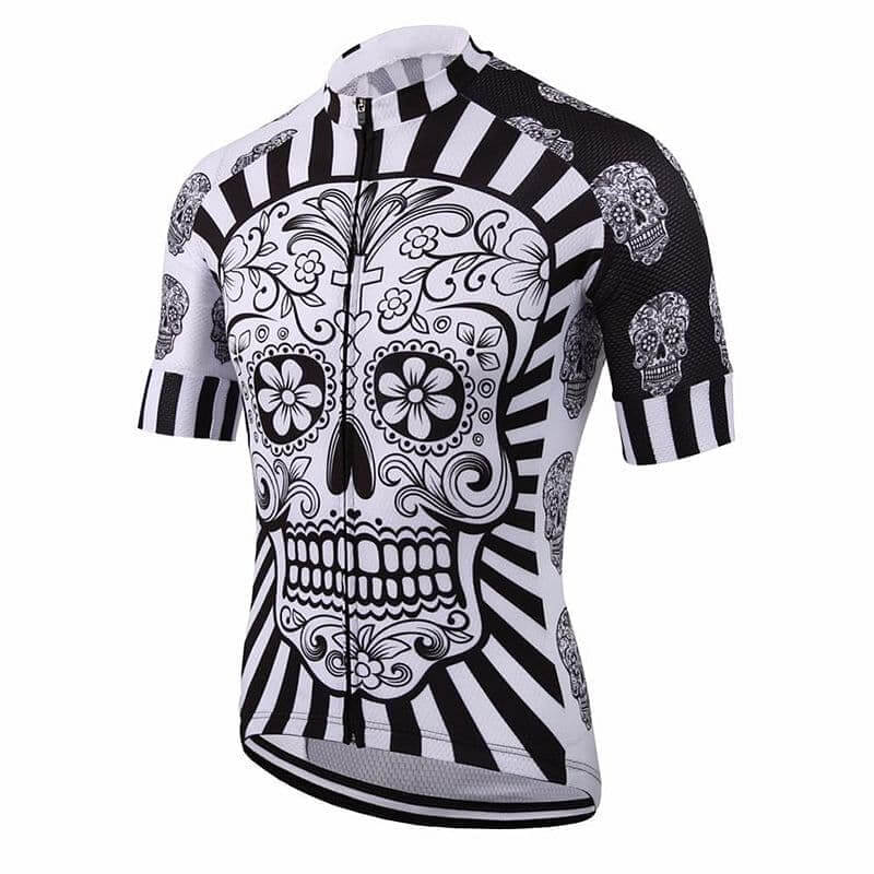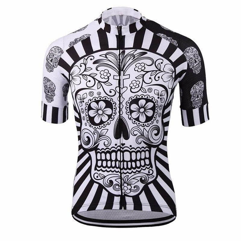 Tag der Toten Skelett Fahrradtrikot | Kurze Ärmel | Schwarz und Weiß