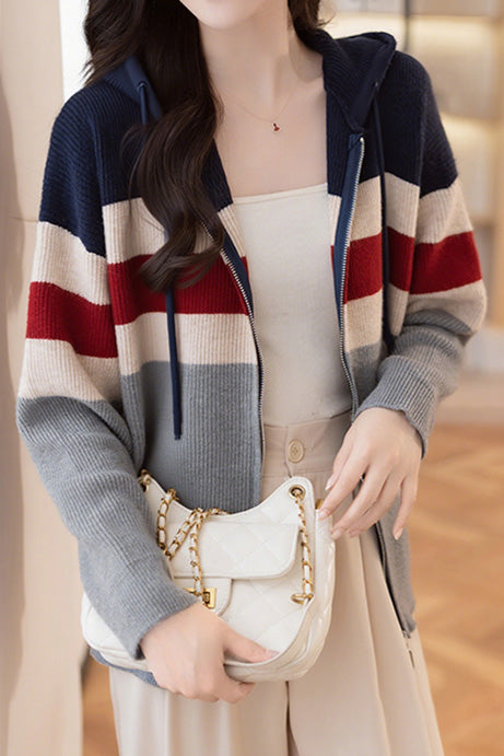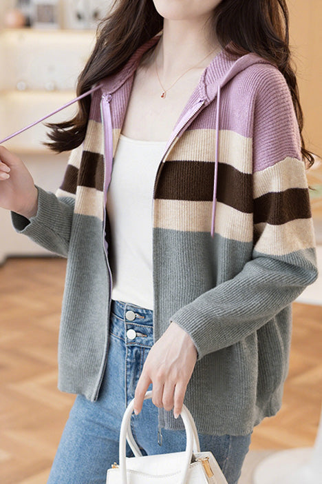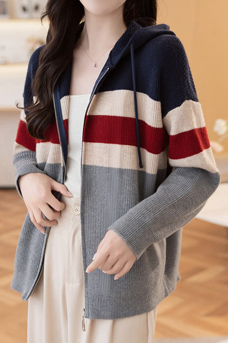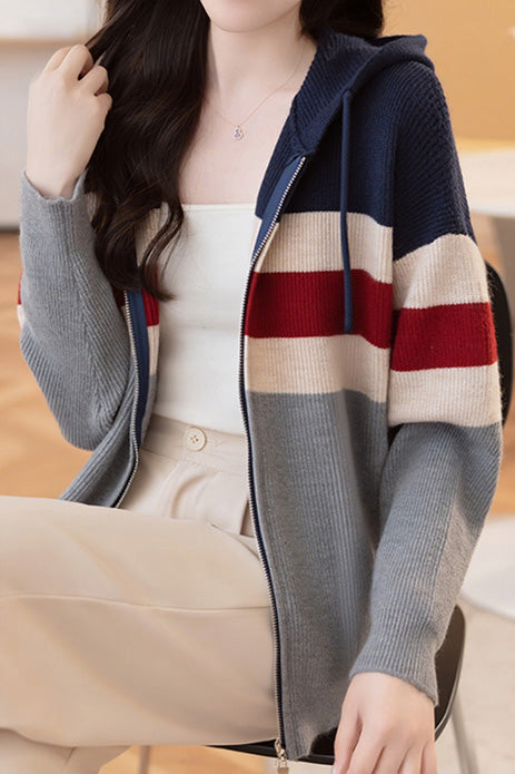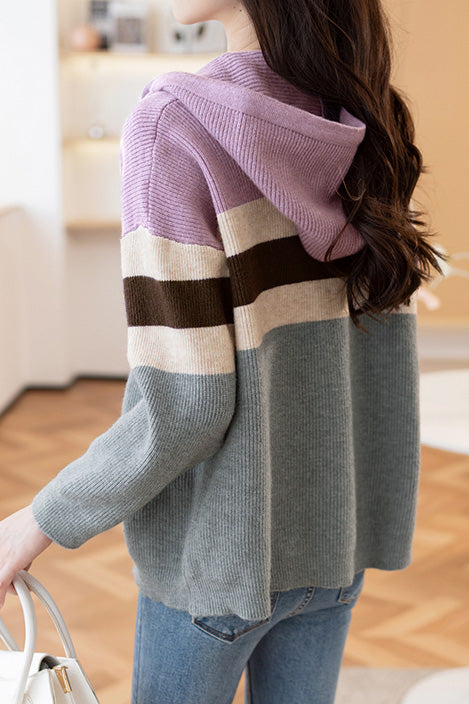 Lässiger, farbblockierter, lockerer Kapuzencardigan