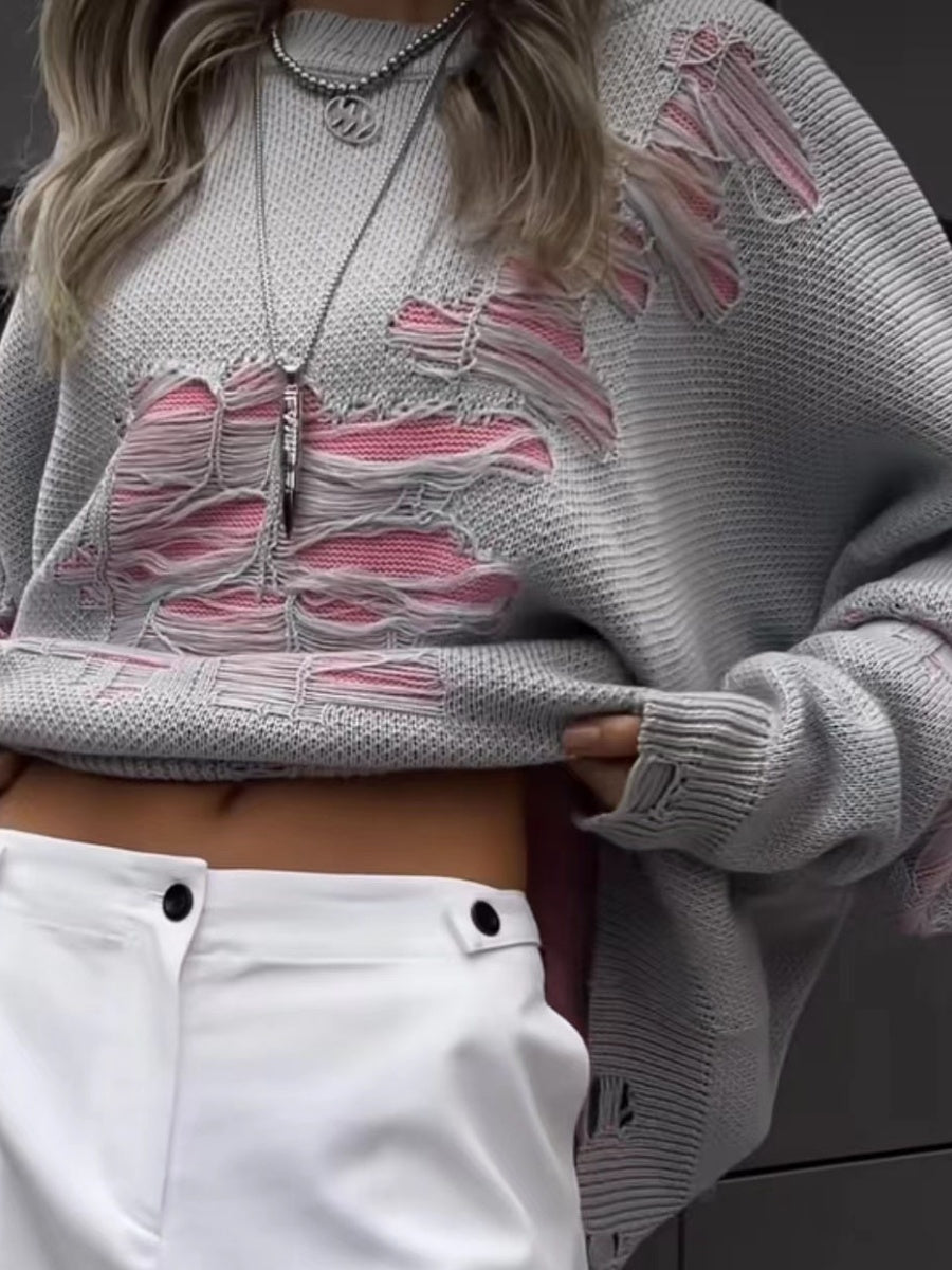 Liber Autumn Damen Kontrastfarbe zerrissener Patchwork Pullover