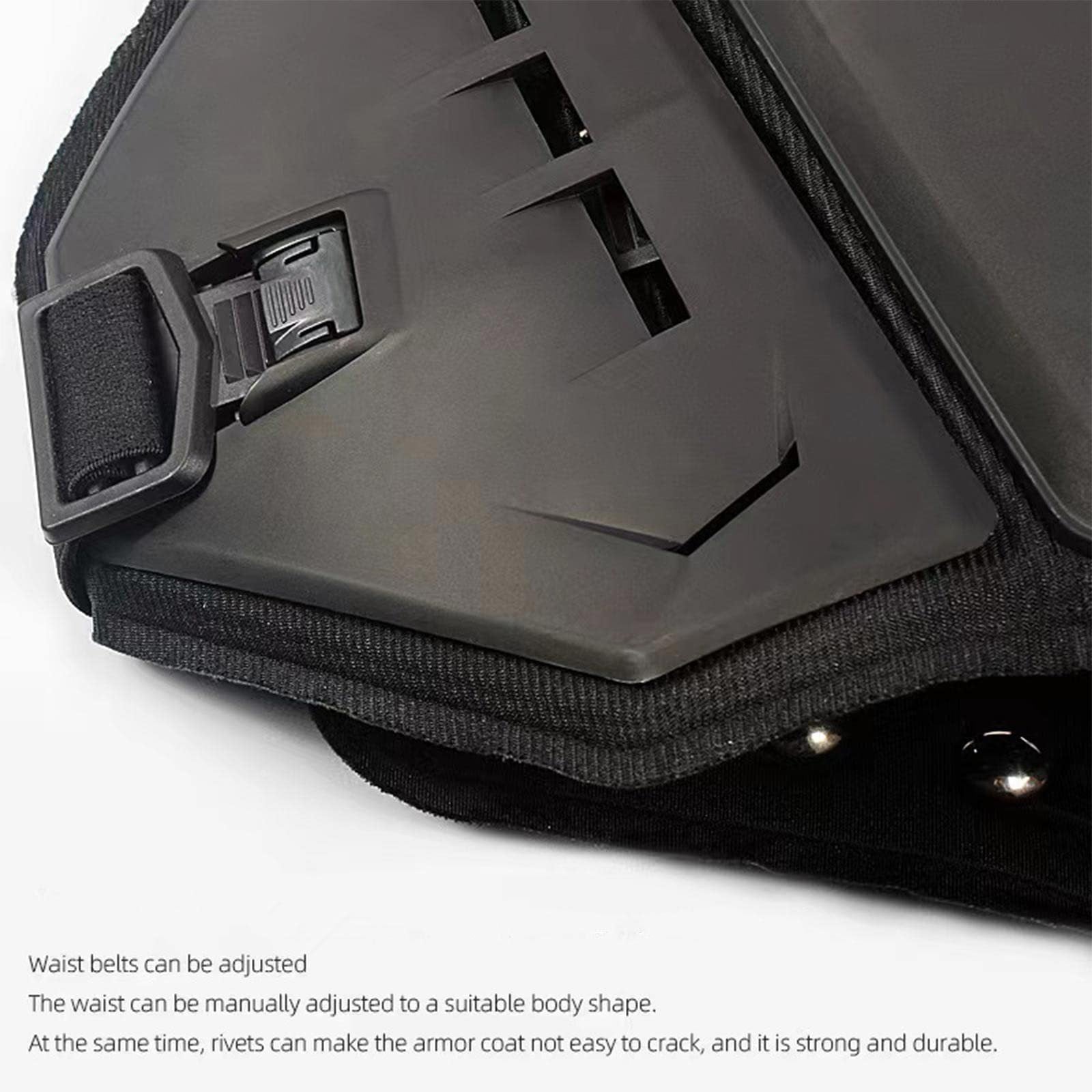 Diese robuste Motorrad-Schutzweste aus PE-Material bietet optimalen Schutz für den Oberkörper bei jeder Fahrt. Ausgestattet mit verstellbaren Schultergurten passt sie sich individuell an und gewährleistet einen sicheren Sitz.