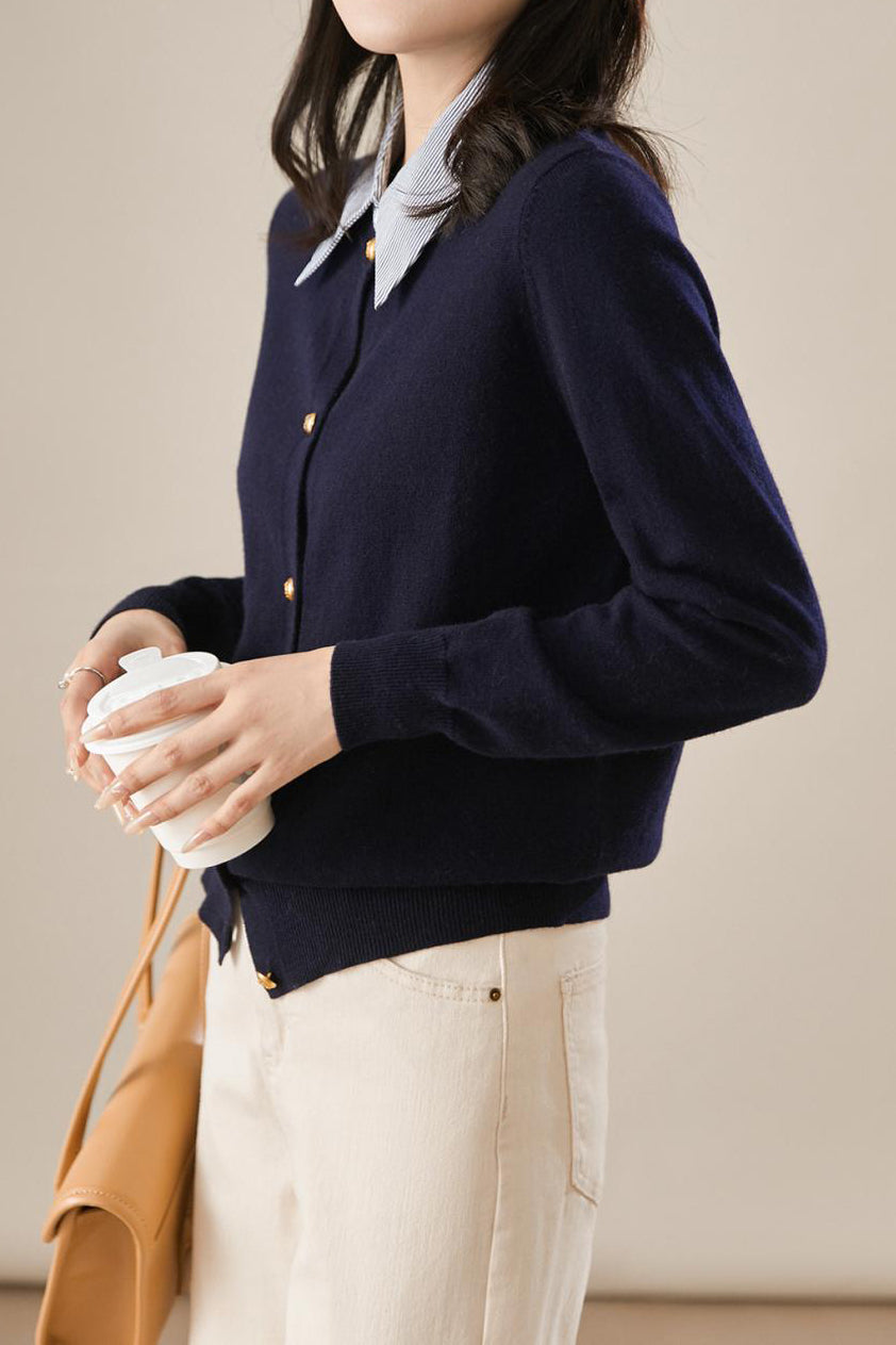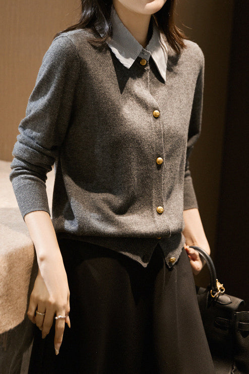 Schicht-Look Hemdkragen Gestreifter Kontrast Strick Cardigan - 3 Farben verfügbar