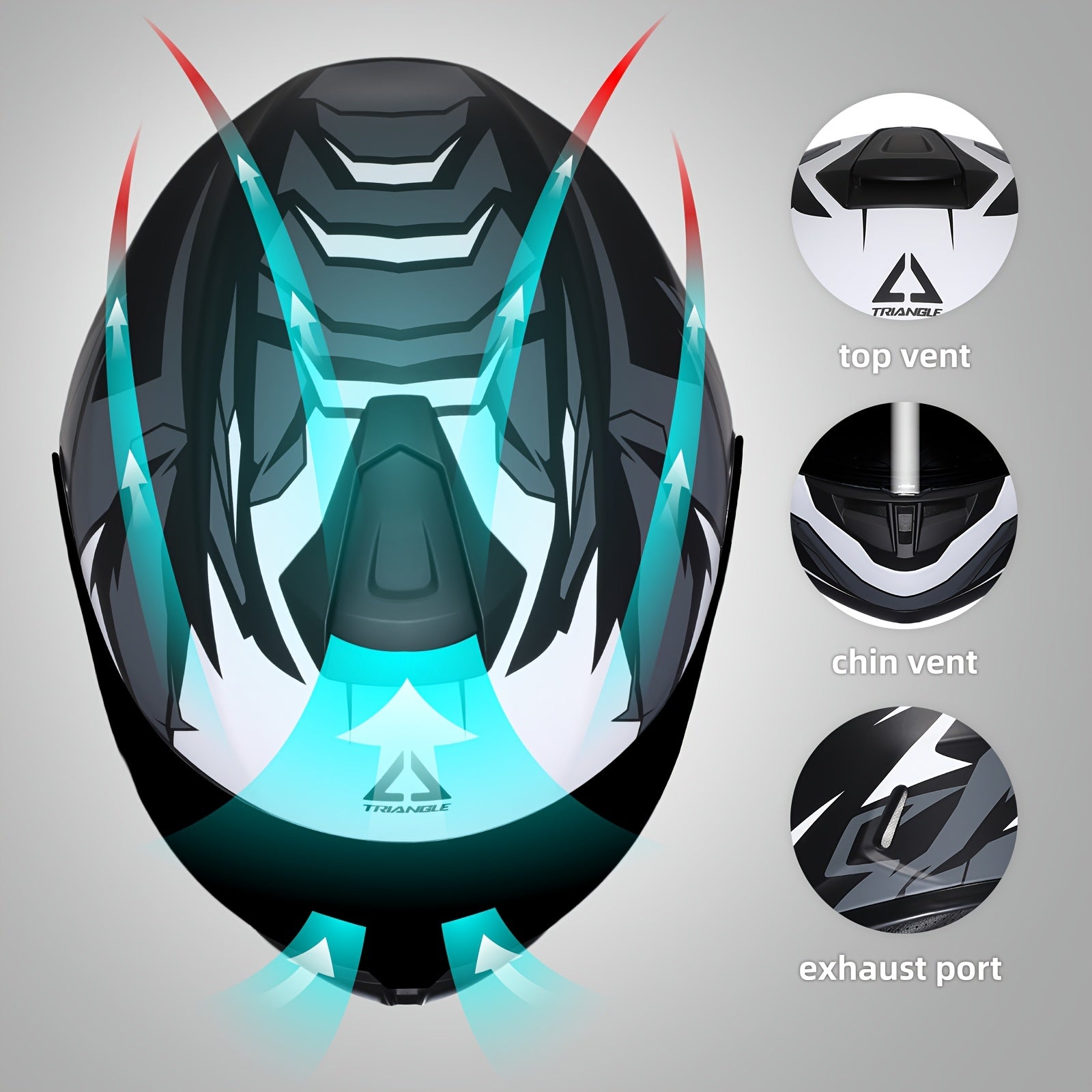 Geometrisches Dreieck-Design: Das auffällige, dreidimensionale Dreiecksmuster verleiht dem Helm eine futuristische und dynamische Ausstrahlung. Ein echter Hingucker, der Ihre Persönlichkeit auf der Straße unterstreicht.
