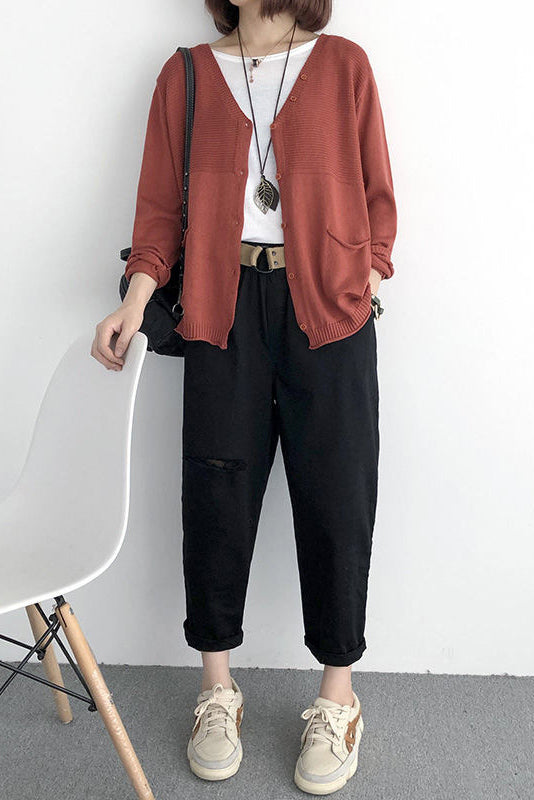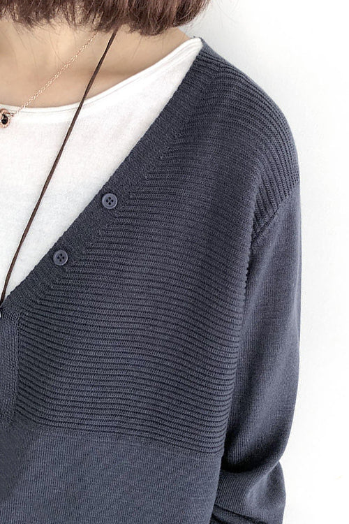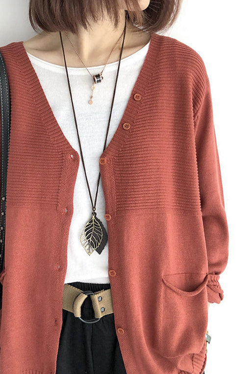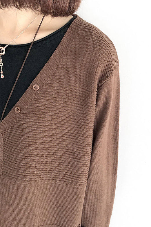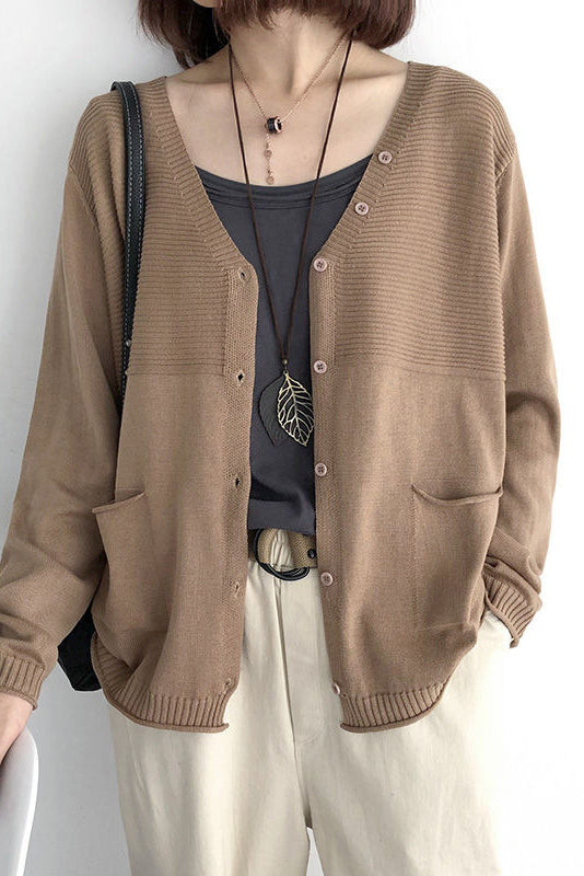 V-Ausschnitt Rippenstrick-Cardigan mit Kontrast - 5 Farben verfügbar